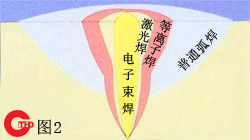電子束焊屬于高能束焊接的一種,它與其它焊接方法的對比可以從圖2中清楚地看出,電子束焊接特點如下: